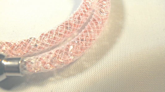 Pink bracelet filled with white crystals