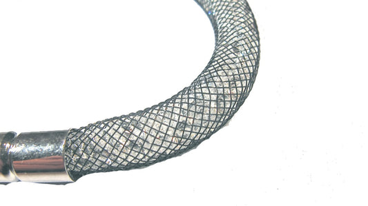 Black bracelet filled with white crystals